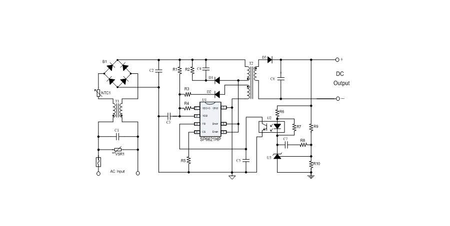 SP6621HP是一顆電流模式PWM控制芯片,內(nèi)置功率MOSFET。