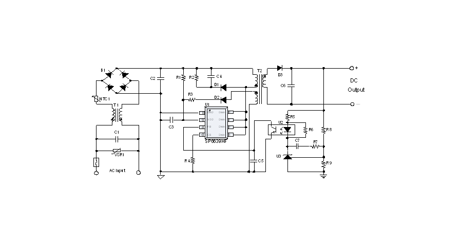 SP6639HF是一顆電流模式PWM控制芯片,內(nèi)置功率MOSFET,用于功率在27W以內(nèi)的方案。該芯片在系統(tǒng)輸出空載時工作在跳頻模式,在系統(tǒng)輸出輕載到中等負載階段工作在PFM模式,在輸出重載時工作在最大恒定工作頻率。SP6639HF的啟動電流和工作電流設(shè)定的比較小,以此減小待機時的功耗。芯片內(nèi)置有斜坡補償電路,避免次諧波振蕩的發(fā)生,改善系統(tǒng)的穩(wěn)定性。芯片內(nèi)置有前沿消隱時間(Leading-edge blanking time),消除緩沖網(wǎng)絡(luò)中的二極管反向恢復(fù)電流對電路的影響。該芯片帶有抖頻功能,能夠有效改善系統(tǒng)的EMI性能。芯片最低的工作頻率設(shè)置在音頻以上,在工作時可以避免系統(tǒng)產(chǎn)生噪音。SP6639HF內(nèi)置多種保護,包括逐周期限流保護(OCP),過壓保護(OVP),VDD過壓箝位,欠壓保護(UVLO),過溫保護(OTP)等,通過內(nèi)部的圖騰柱驅(qū)動結(jié)構(gòu)可以更好的改善系統(tǒng)的EMI特性和開關(guān)的軟啟動控制。