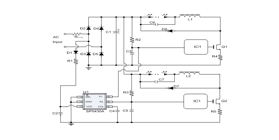SP5430A是一款雙電源LED開關(guān)調(diào)色/調(diào)光專用控制電路,適用于85VAC~265VAC全電壓應(yīng)用,可以兼容隔離與非隔離架構(gòu)的多種LED驅(qū)動方案。SP5430A利用傳統(tǒng)墻壁開關(guān)實(shí)現(xiàn)調(diào)色/調(diào)光功能,用戶無需改造原有的照明開關(guān)控制系統(tǒng)。
