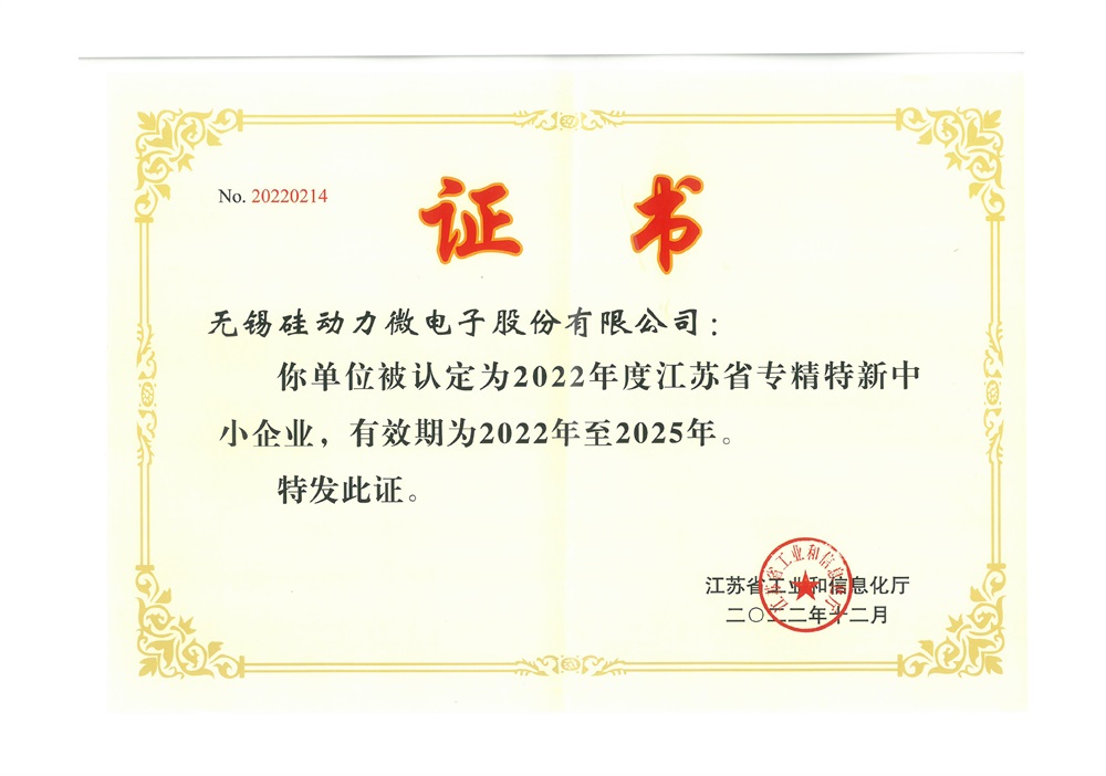 近日,無錫硅動力微電子股份有限公司(以下簡稱:無錫硅動力)被江蘇省工業(yè)和信息化廳評為江蘇省專精特新中小企業(yè),充分體現(xiàn)了省工業(yè)和信息化廳對無錫硅動力在創(chuàng)新能力、研發(fā)能力、技術實力及行業(yè)專業(yè)化程度等方面的高度認可。有利于公司更好地專注核心業(yè)務,有利于提升公司核心競爭力和行業(yè)影響力,對公司未來的發(fā)展產(chǎn)生積極的影響。