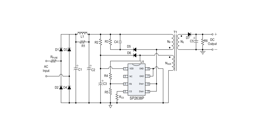 SP2638P提供全面的保護(hù)功能,包括逐周期限流保護(hù)(OCP)、VDD過壓保護(hù)(OVP)、VDD欠壓保護(hù)(UVLO)、FB過壓保護(hù)、輸出短路保護(hù)、輸出過壓保護(hù)、過溫保護(hù)等。其中,輸出短路保護(hù)、輸出過壓保護(hù)具有自動重啟恢復(fù)的功能。