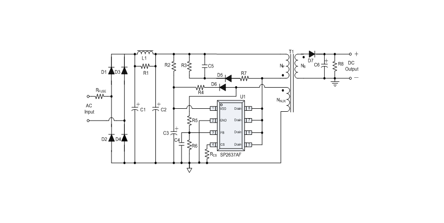 SP2637AF是一款性能優(yōu)異的原邊反饋控制電路,應(yīng)用于小功率AC/DC充電器與適配器??刂齐娐肥褂迷叢蓸蛹夹g(shù)進(jìn)行精確的恒流、恒壓控制,可以省去一般應(yīng)用中的光耦與TL431。