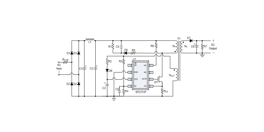 SP2731F是一款性能優(yōu)異的原邊反饋控制電路,應(yīng)用于中、小功率AC/DC充電器與適配器??刂齐娐肥褂迷叢蓸蛹夹g(shù)進(jìn)行精確的恒流、恒壓控制,可以省去一般應(yīng)用中的光耦與TL431。